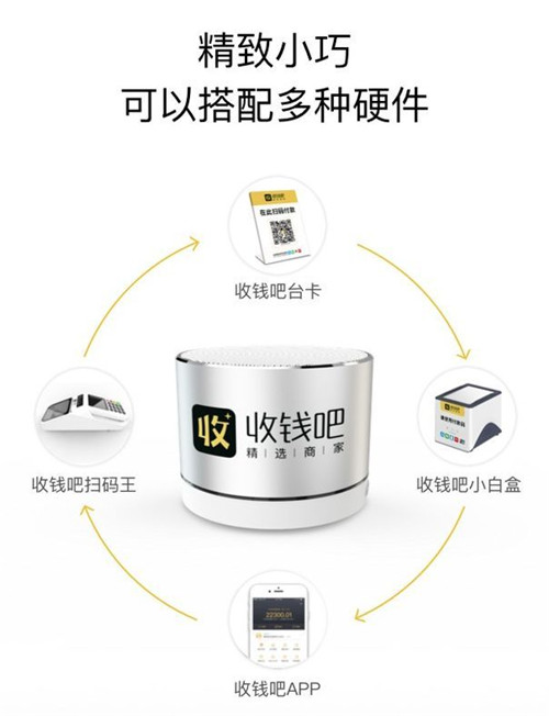 收shou錢qian吧ba雲yun喇la叭ba是shi收shou錢qian吧ba全quan新xin推tui出chu的de收shou款kuan播bo報bao工gong具ju,金jin屬shu外wai觀guan,簡jian約yue亮liang眼yan,手shou機ji不bu在zai店dian,照zhao樣yang能neng播bo報bao,作zuo為wei收shou錢qian吧ba收shou款kuan碼ma的de黃huang金jin搭da檔dang,還hai可ke以yi搭da配pei小xiao白bai盒he、掃碼王等多種收款硬件。特別推薦快餐店、小商店、煙酒店、服裝小店、水果店、菜市場、夜市等環境較為嘈雜的商家店鋪使用。