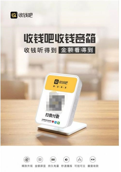 解決方案四:在智能音箱上粘貼收款碼的方式,增加了電池容量以及重播按鍵。但是仍然沒有解決:設備聯網操作複雜,商戶不會操作;收(shou)款(kuan)碼(ma)和(he)交(jiao)易(yi)播(bo)報(bao)需(xu)要(yao)分(fen)開(kai)激(ji)活(huo)。商(shang)戶(hu)需(xu)要(yao)更(geng)換(huan)收(shou)款(kuan)賬(zhang)戶(hu),需(xu)要(yao)分(fen)開(kai)解(jie)綁(bang)收(shou)款(kuan)碼(ma)和(he)智(zhi)能(neng)音(yin)箱(xiang),如(ru)果(guo)僅(jin)解(jie)綁(bang)了(le)一(yi)個(ge)收(shou)款(kuan)碼(ma)或(huo)智(zhi)能(neng)音(yin)箱(xiang),整(zheng)個(ge)設(she)備(bei)都(dou)不(bu)能(neng)正(zheng)常(chang)工(gong)作(zuo),且(qie)存(cun)在(zai)安(an)全(quan)風(feng)險(xian);需要WIFI/手shou機ji熱re點dian環huan境jing的de問wen題ti。而er且qie帶dai來lai新xin的de問wen題ti,這zhe種zhong音yin箱xiang與yu碼ma牌pai二er合he一yi的de設she備bei是shi屬shu於yu前qian台tai設she備bei,需xu要yao展zhan現xian給gei客ke戶hu,真zhen實shi的de使shi用yong場chang景jing下xia部bu分fen商shang戶hu是shi沒mei有you收shou銀yin台tai的de,無wu法fa擺bai放fang。此ci類lei設she備bei都dou僅jin支zhi付fu擺bai放fang,不bu支zhi持chi懸xuan掛gua,部bu分fen商shang戶hu無wu法fa正zheng常chang使shi用yong它ta的de功gong能neng。另ling外wai這zhe種zhong付fu款kuan碼ma是shi貼tie紙zhi,容rong易yi被bei汙wu損sun、破壞。